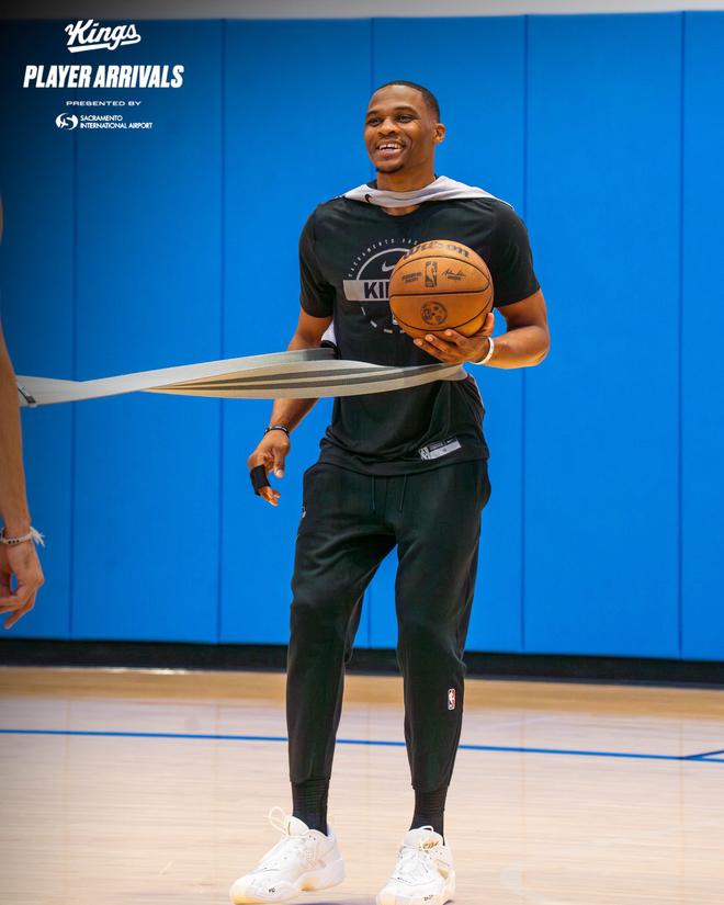 北京时间10月18日,36岁的威少加盟国王后首次参加球队训练,身穿国王训练服露出笑容,据美记者报道,目前威少仅仅拿着一份无保障底薪合同;另外国王记者报道,威少今日无缘参加国王与湖人的比赛。